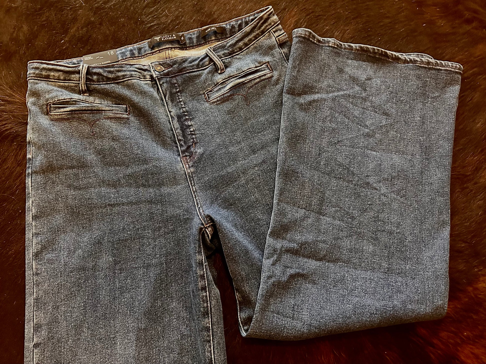 Dark wash high rise front pocket detail wide leg jeans (32"inseam)